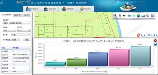 项目以经济开发区基础地理空间数据和相关业务属性数据为研究对象,利用先进的地理信息技术、空间数据库技术和管理信息技术,建立开发区“一张图”管理信息系统,以满足开发区“一张图”信息数据的快速处理、发布、统计、更新和安全管理需要,实现基础信息数据在各个部门之间便捷、平滑、高效的数据交换与共享, 达到图形化、可视化、自动化的效果,从而为开发区日常行政办公、企业经济统计分析、土地集约利用评价提供基础数据支撑和业务辅助支持,使开发区各部门相关工作人员能够更加准确、高效、便捷的开展工作。同时系统提供对外公共服务接口,基于Web GIS技术建设开发区电子政府门户网站。