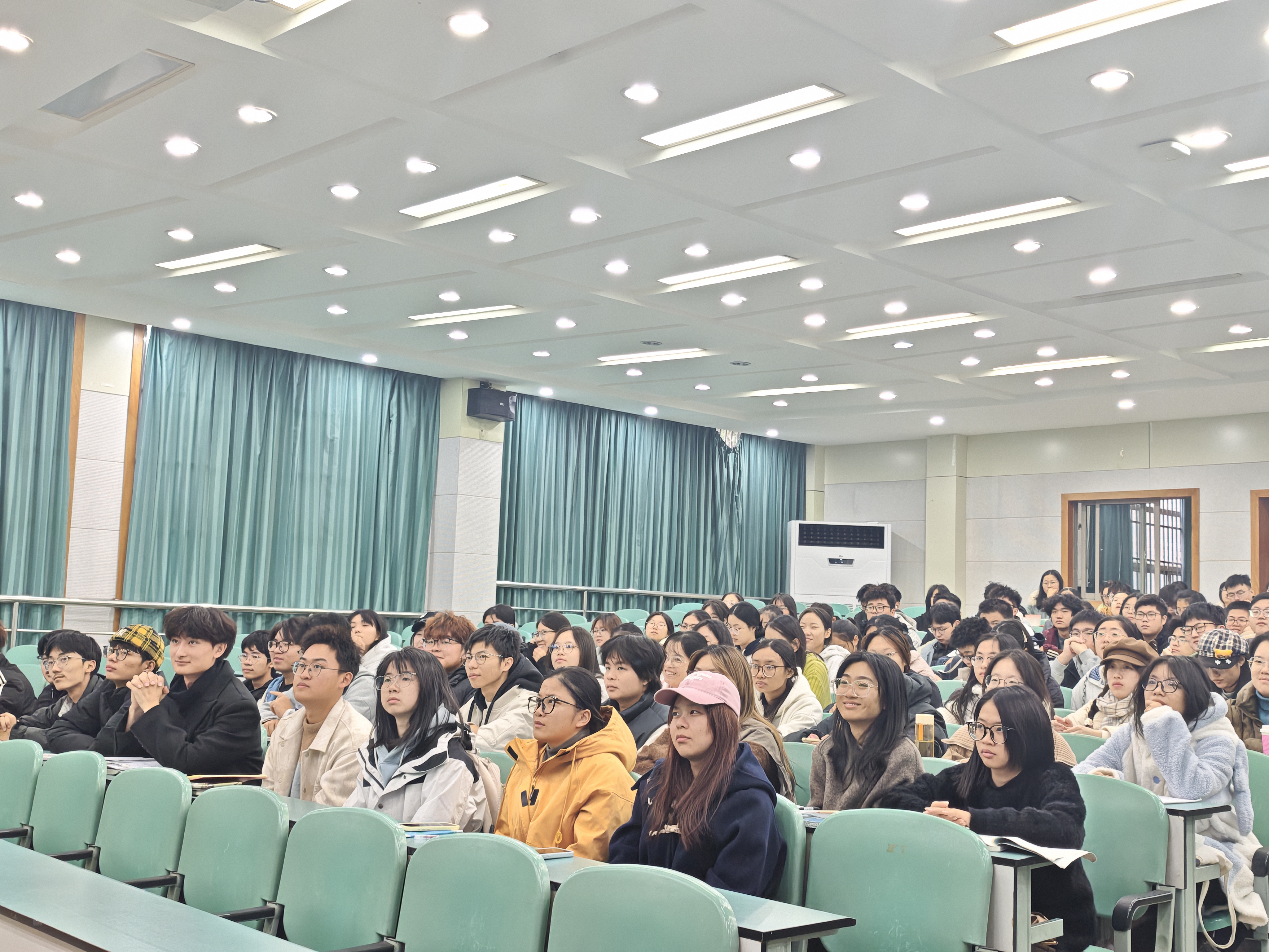 朱立松结合个人从实习、创业到深耕外贸的丰富经历,与在场同学展开亲切交流。他将自身感悟凝练为三方面核心观点,为青年学子的成长与发展提供务实建议。一是“持续学习是终身课题”。朱立松指出,学习不应止于校园,而是一生的功课。他以自身坚持进修的实际经历为例,强调学习是一种责任而非负担,并提醒同学们,初入职场时应更看重能力提升所带来的长远价值,而非仅关注起薪高低。二是“能力成长比一时得失更重要”。通过回顾实习阶段的真实案例,他表示“企业更看重的是你的进步,而非一时的得失”,鼓励青年学生在校期间努力提升综合素质,培养开朗自信、勇于表达的个性,为未来职业道路夯实基础。三是“真诚与担当是成长信条”。朱立松与同学们探讨了情商与智商在职场中的作用,并建议大家重视社交能力的锻炼。他特别送上“首先是真诚,其次是担当”的人生心得,鼓励每位同学真诚待人,勇于担当。