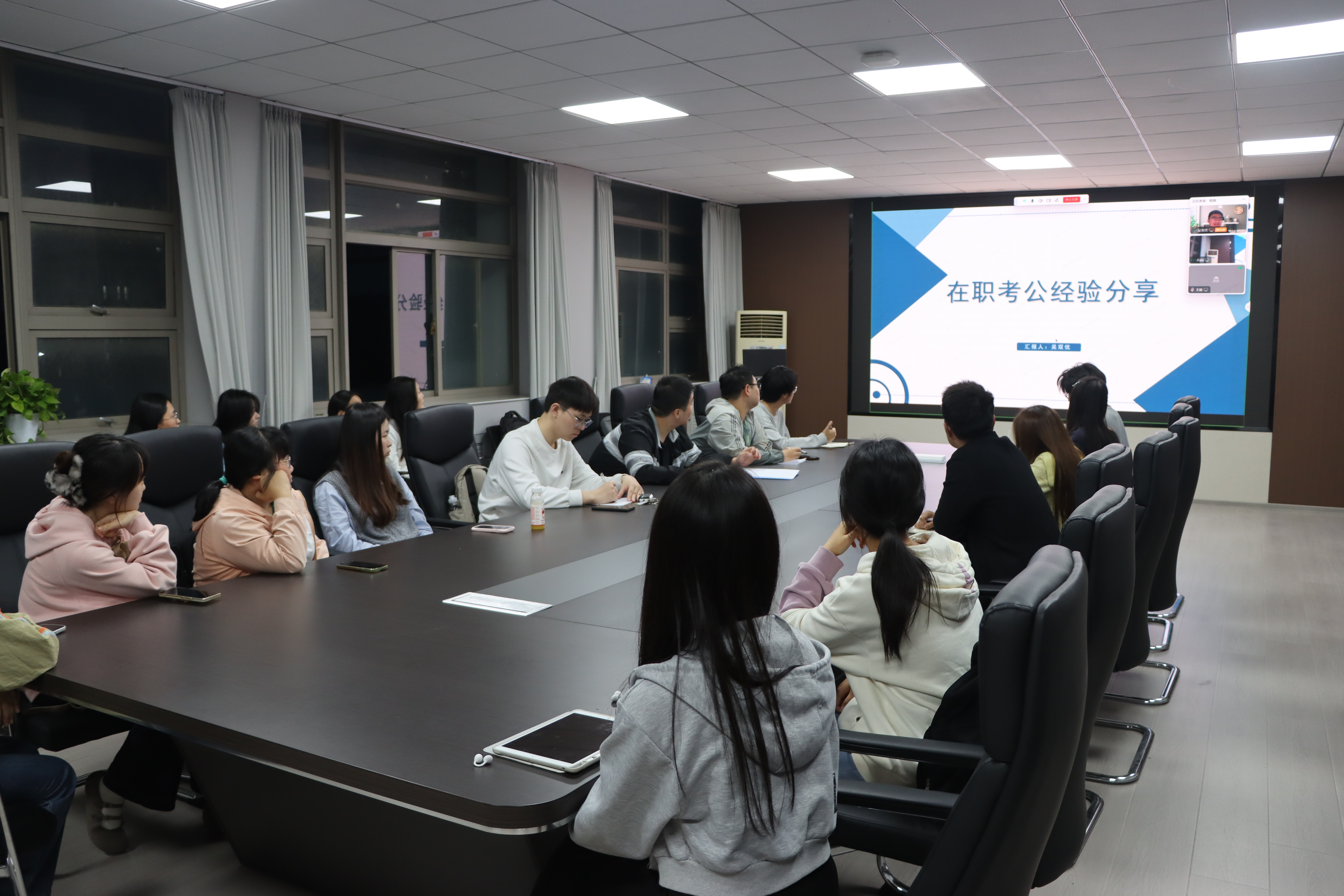 在嘟嘟成人网行政楼三楼会议室举办就业经验分享会。会议采取线上线下同步方式进行,由土地资源管理专业教师程超主持,特邀土地资源管理专业2025届本科毕业生吴双优主讲,面向全体同学分享在职考公与就业的成长历程和宝贵经验。