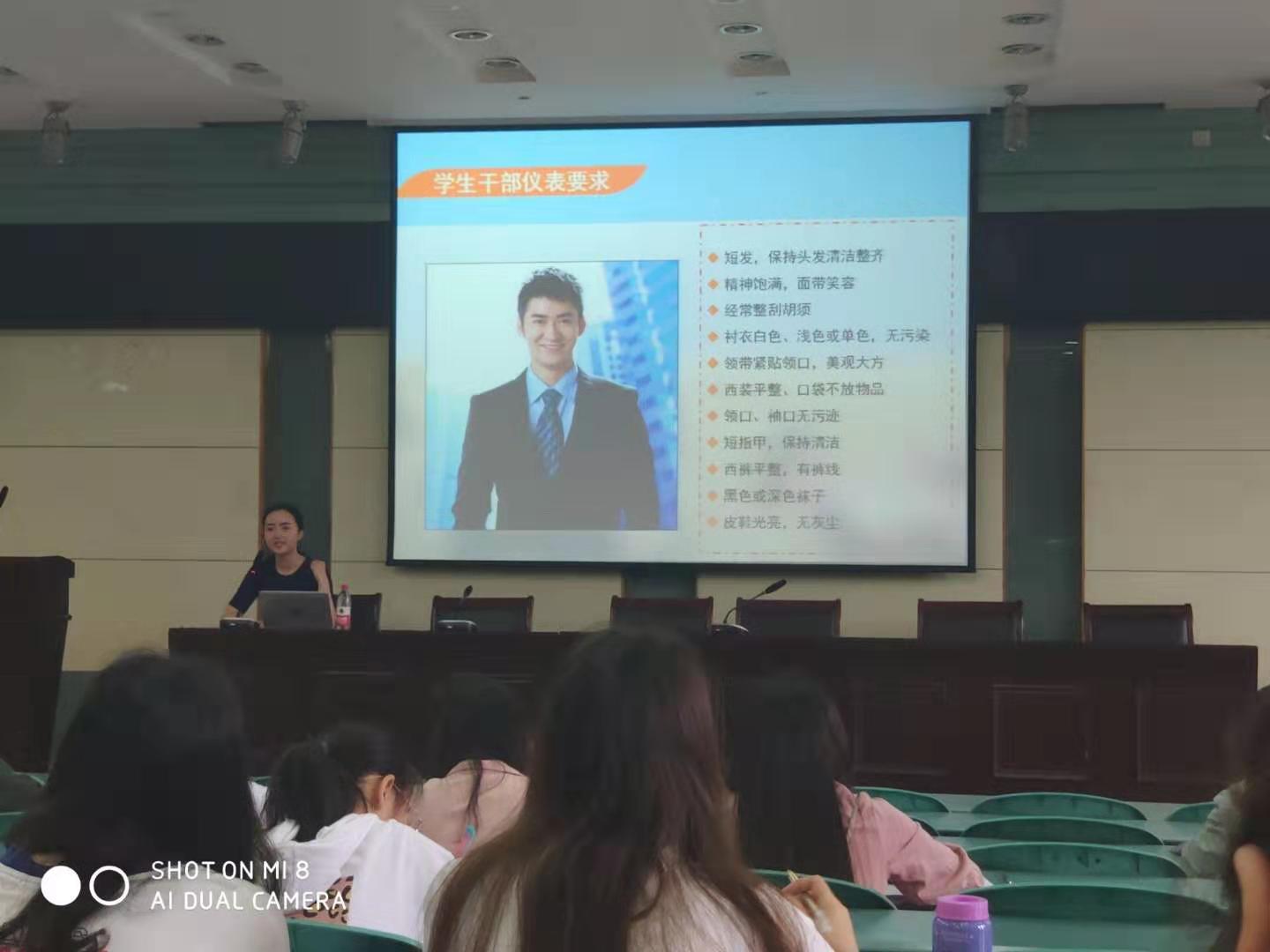 嘟嘟成人网邀请芜湖机电职业技术嘟嘟成人网文化礼仪讲师、校友吴燕带来《人际交往礼仪素养的培养与提升》拓展课程,结合生动案例,从个人形象、尊重礼仪、细节表达等几个方面为学生骨干们传授了社交礼仪的实用技能。