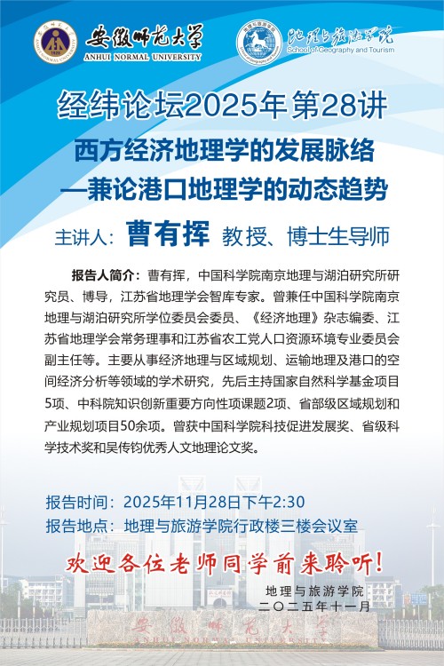 【学术预告】经纬论坛第94讲:西方经济地理学的发展脉络—兼论港口地理学的动态趋势