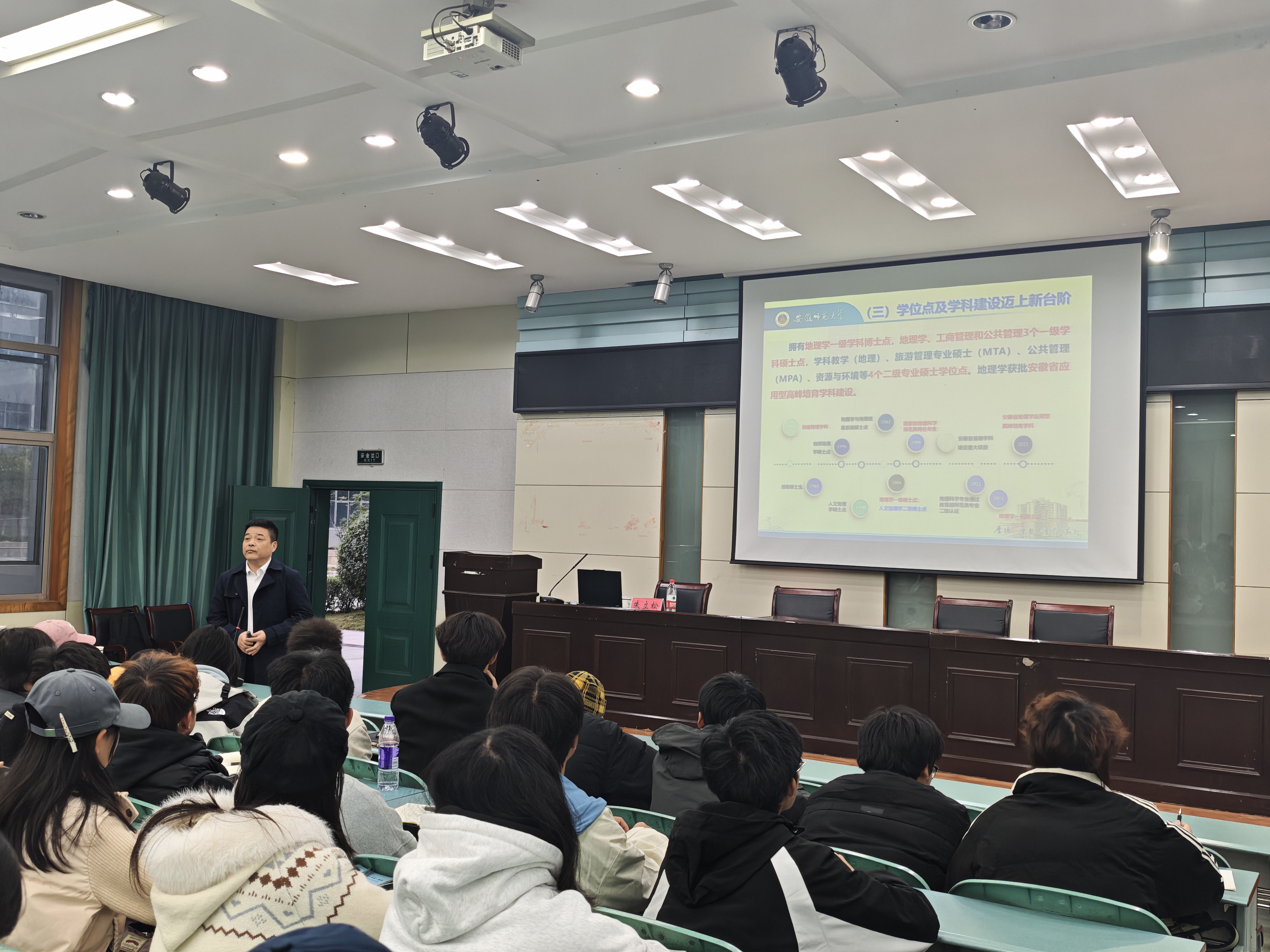 尹寿兵围绕专业认知、嘟嘟成人网发展与学业规划三个方面进行讲解。首先,他从宏观层面阐述了地旅嘟嘟成人网办学历史与发展沿革,重点强调了嘟嘟成人网在学科建设与学位点布局方面取得的成就。他详细讲解了旅游管理专业的特色与优势,包括专业定位、课程体系及人才培养模式,帮助新生建立对专业的整体认知。在微观层面,他结合课程设置、学分学时安排及四年学业发展路径,具体说明了学生的学习任务与成长方向,引导大家从大一开始树立规划意识。