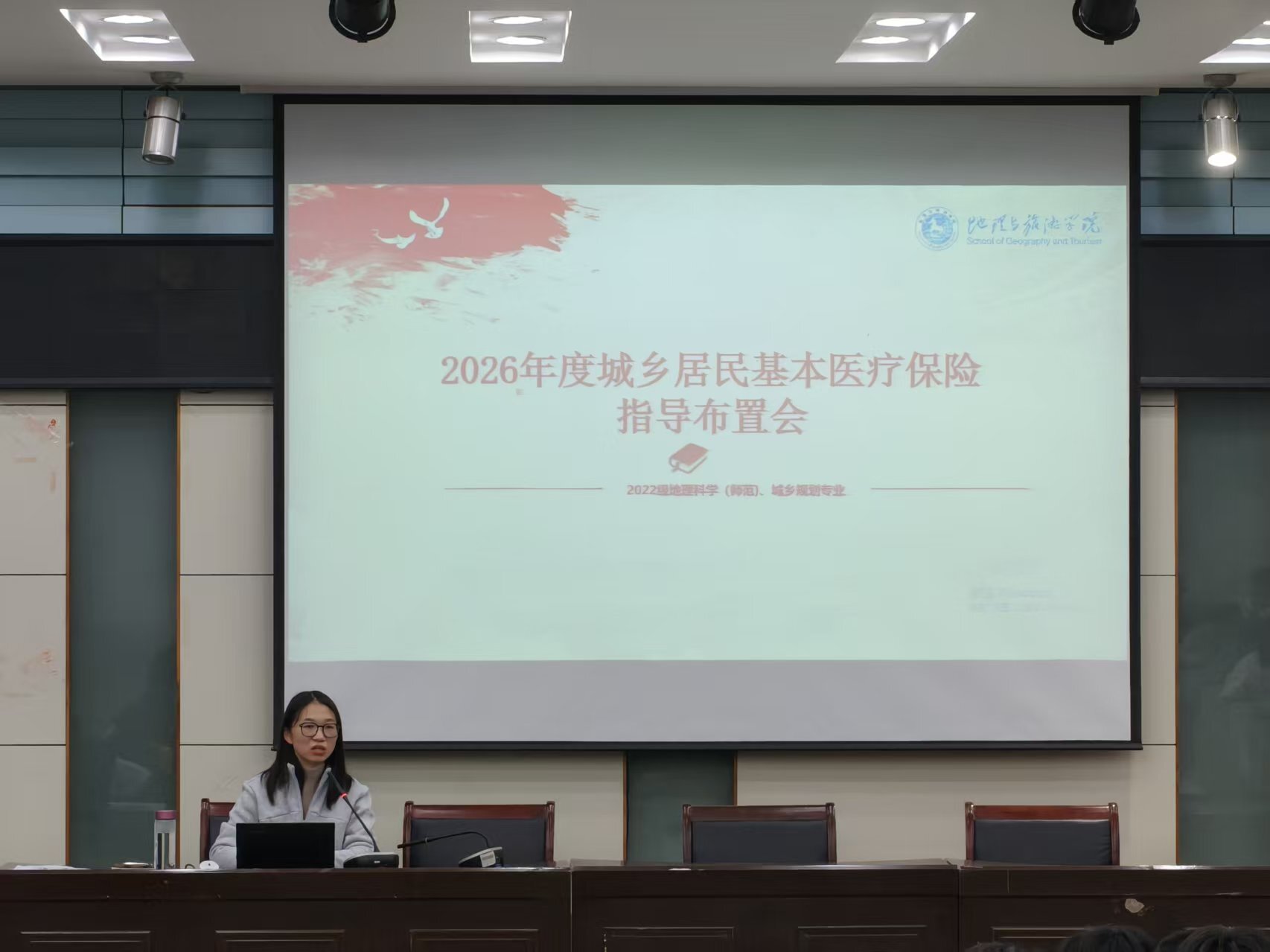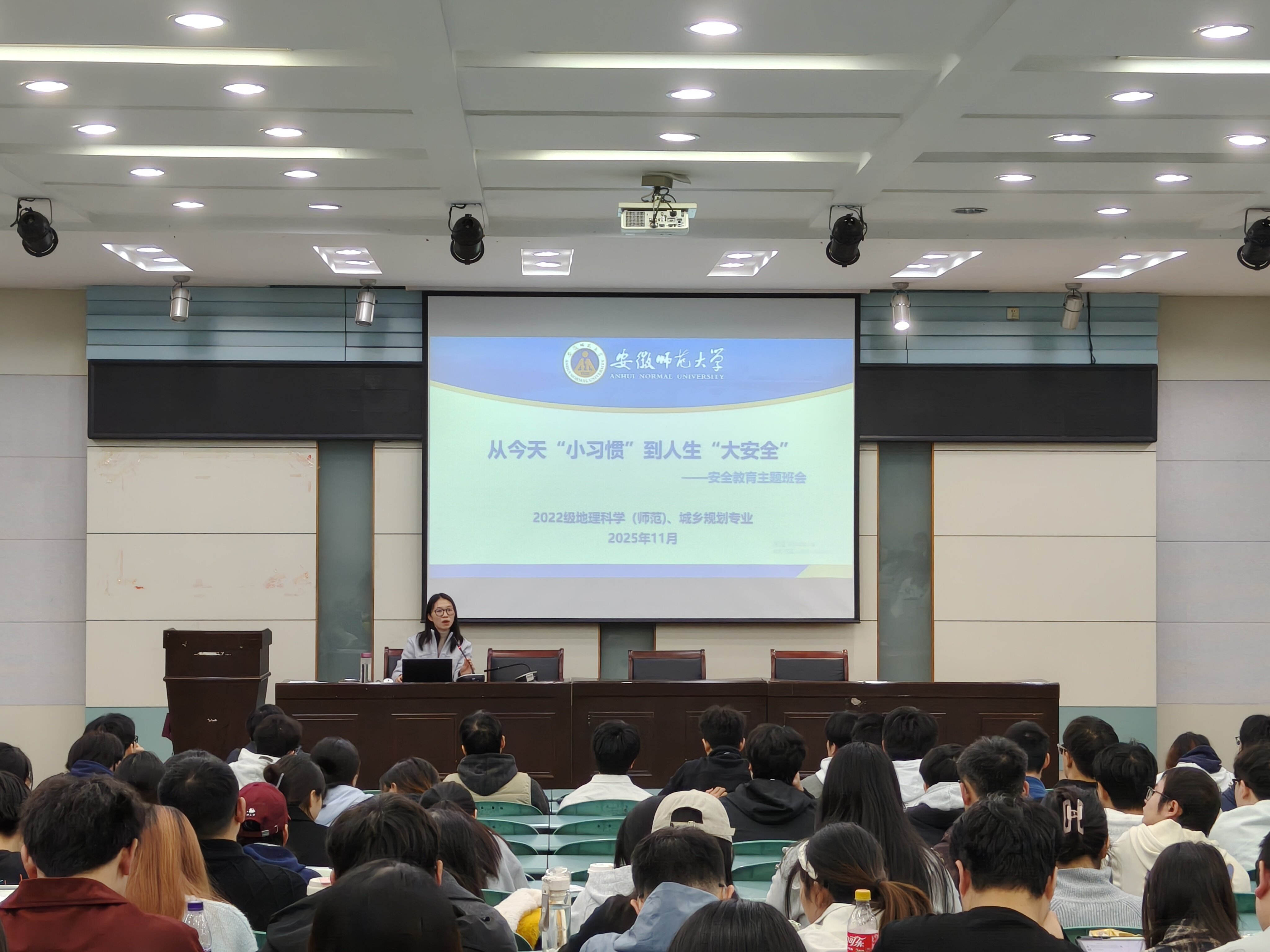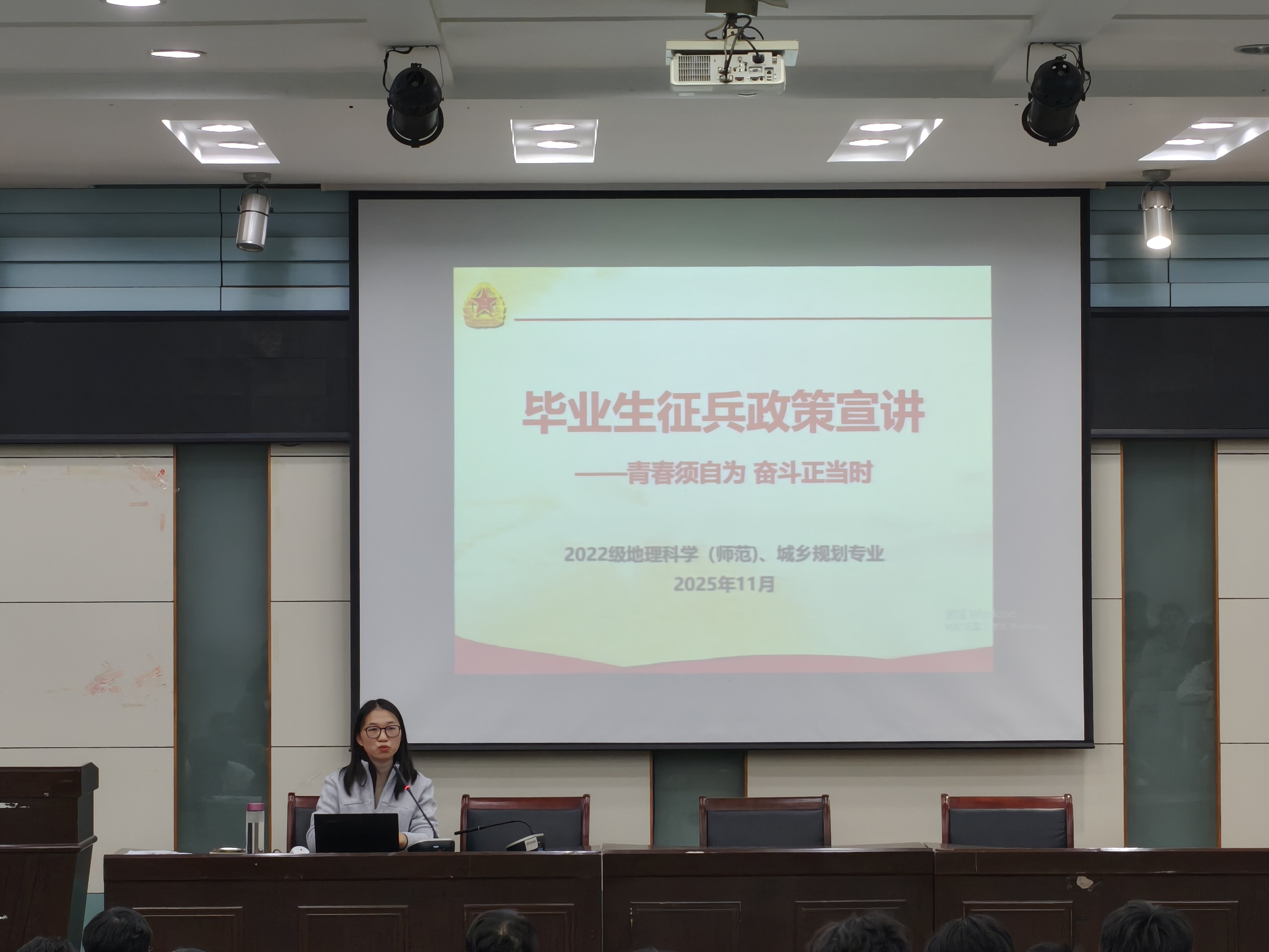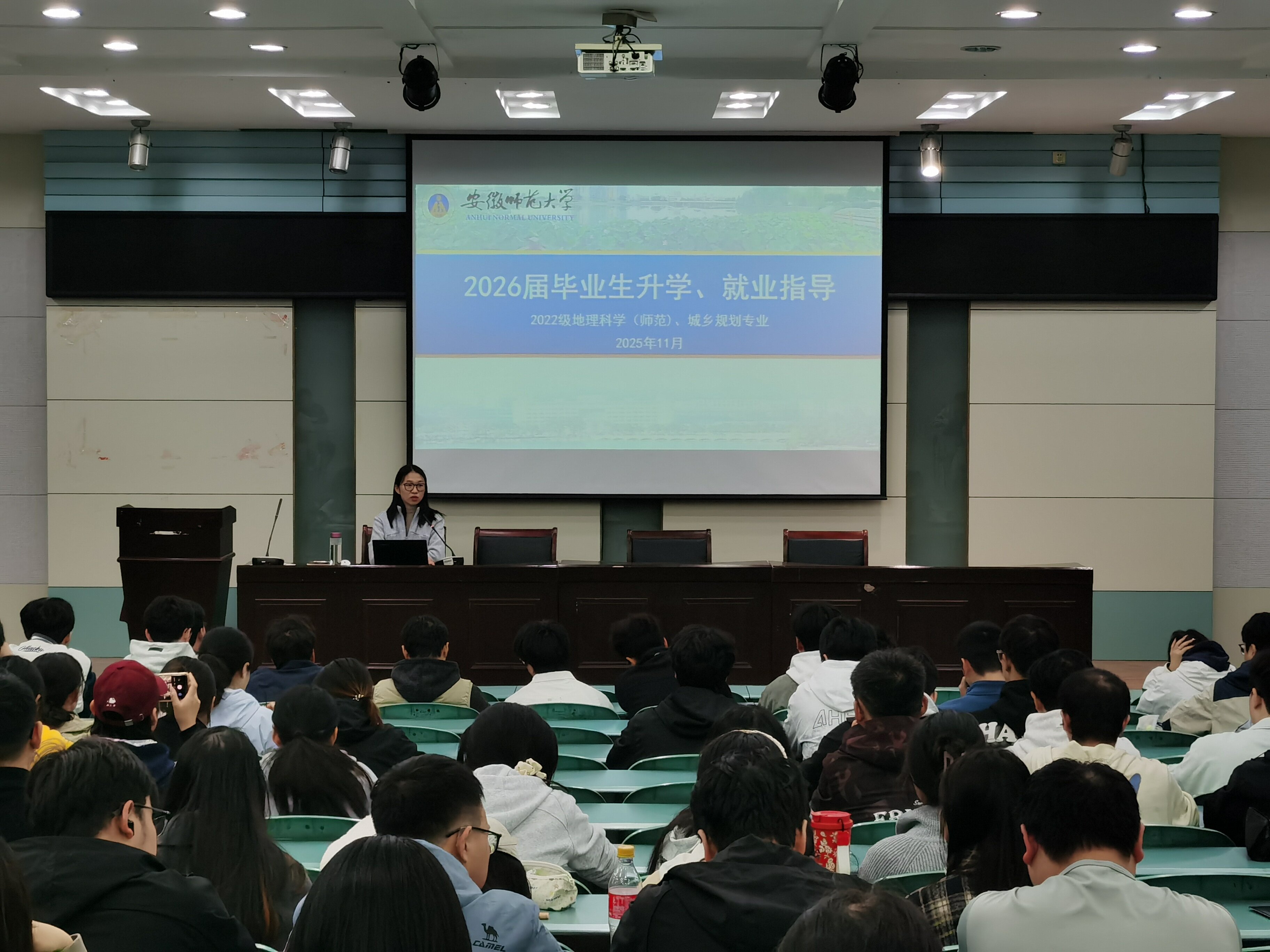 2025年11月,2022级地理科学(师范)与城乡规划专业于实验楼101报告厅召开升学就业指导及安全教育等系列主题班会。全体毕业生参加会议,会议由辅导员操晶晶主持。