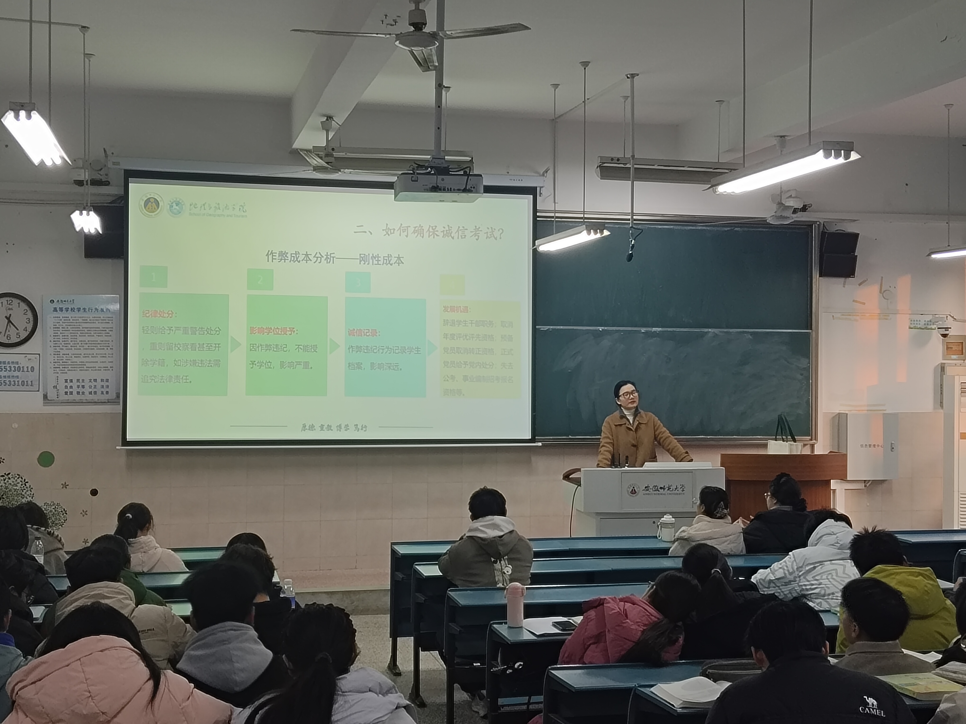 2024级地理信息科学、旅游管理专业召开了期末学风建设与诚信考试主题班会。班会由辅导员韦银艳主持。