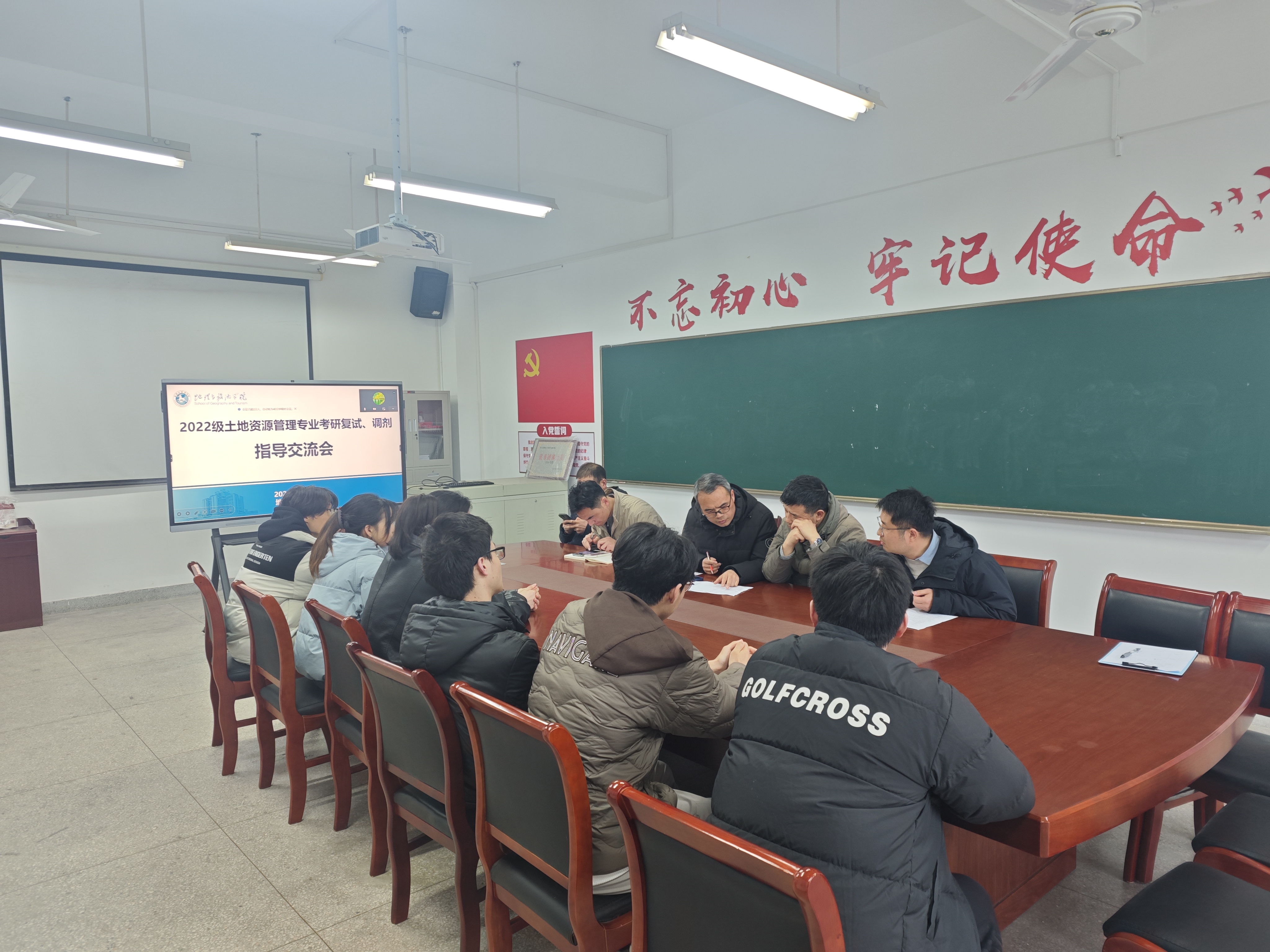 在嘟嘟成人网实验楼401召开了2022级土地资源管理专业考研复试调剂指导交流会。会议采用线上线下相结合的方式进行,土地资源管理专业负责人吴九兴,专业教师费罗成、梁栋栋、罗遥、程超,辅导员陈祥云及该专业考研初试成绩达国家线学生参加了会议。