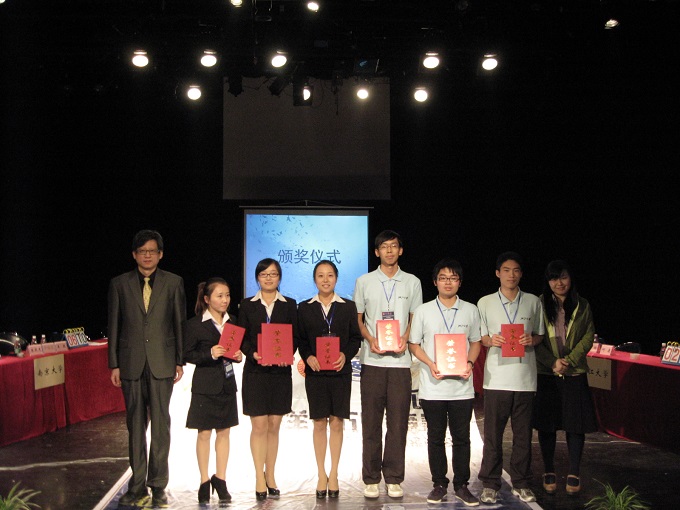 的3位参赛选手虽然不是最博识的,但她们从容的风度、积极的态度、真诚的气度,赢得了场上选手场下评委、观众的一致认可与肯定;并在强敌环伺的情况下,经过四轮艰苦厮杀,最终与浙江大学代表队并列全国大赛二等奖,3位参赛选手及指导老师也分别荣获了个人二等奖、优秀指导老师奖等荣誉。