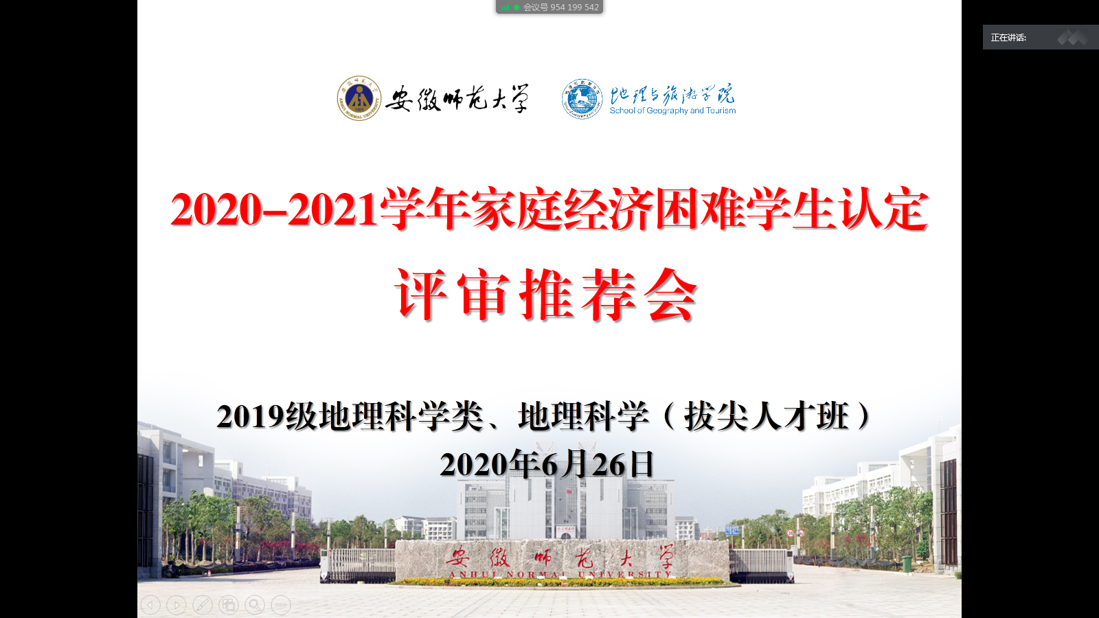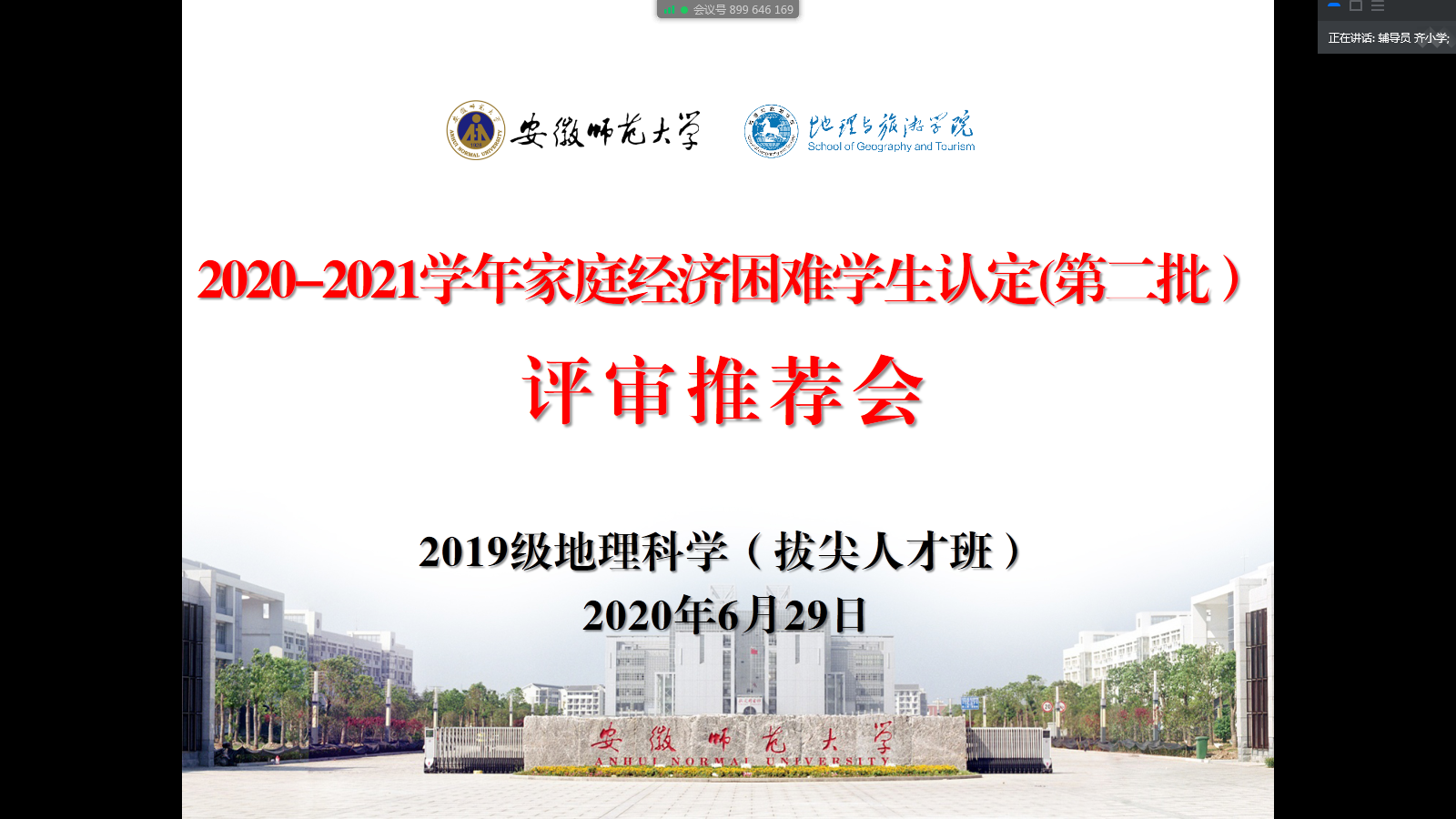 本网讯(地旅嘟嘟成人网 齐小学)为贯彻落实学校大学生资助政策,认真做好家庭经济困难学生资助工作,公平、公正、合理配置资助资源,精准资助家庭经济困难学生。6月26日、29日,2019级地理科学类1班、2班和2019级地理科学(拔尖人才班)召开2020-2021学年家庭经济困难学生认定评审推荐会,各班级认定评议小组全体成员参加会议。会议由认定评议小组组长、辅导员齐小学主持。
