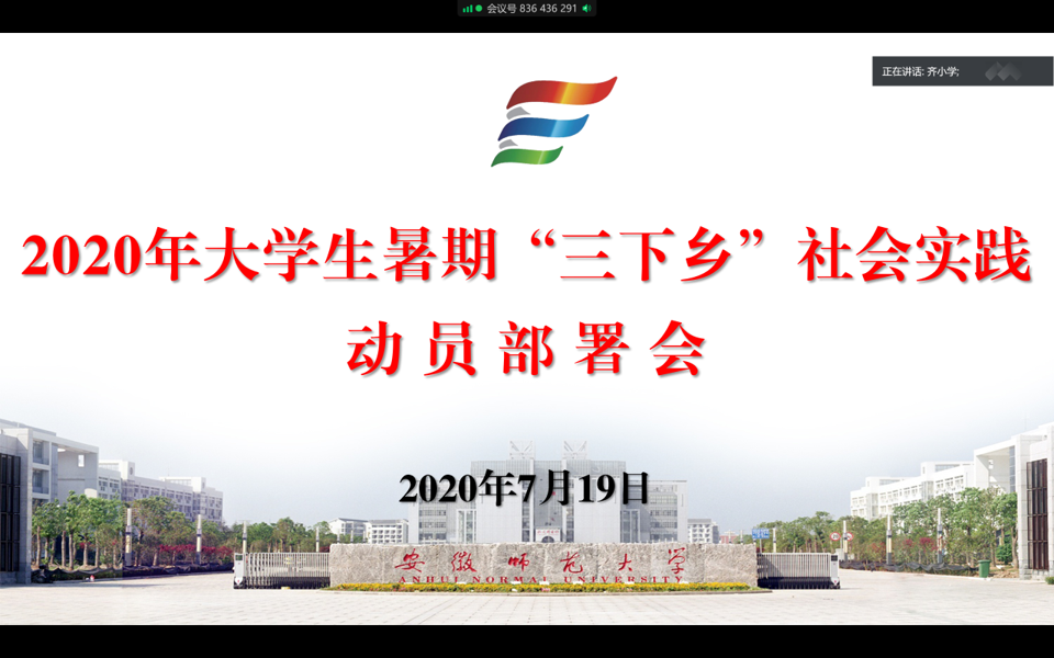 随后,齐小学领学了学校关于开展大学生暑期“三下乡”社会实践活动通知的文件精神。他强调,此次暑期社会实践是在新冠肺炎疫情防控常态化、当前洪涝灾害多发频发的特殊背景下启动的,大家必须把安全放在第一位,结合活动主题、总体原则和专业特色,按照文件要求和时间节点积极申报项目、组建团队、开展活动,及时做好活动实践成果固化工作,争取产出一批有影响有价值有意义的成果,坚决杜绝搞形式、走过场,实现通过暑期社会实践经风雨、见世面、强筋骨、增本领的最终目标。