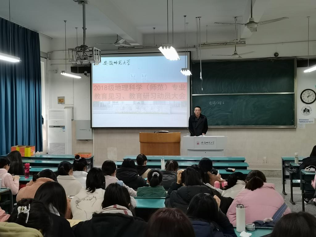 本网讯(地旅嘟嘟成人网 罗文菁 丁茹栩)为了充分了解教育见习与研习的目的、内容与安排,11月27号下午2点于教学楼2号楼102教室举行2018级地理科学(师范)专业教育见习、研习动员大会。此次会议由指导老师朱永恒主持,2018级地理科学师范专业全体成员参加。