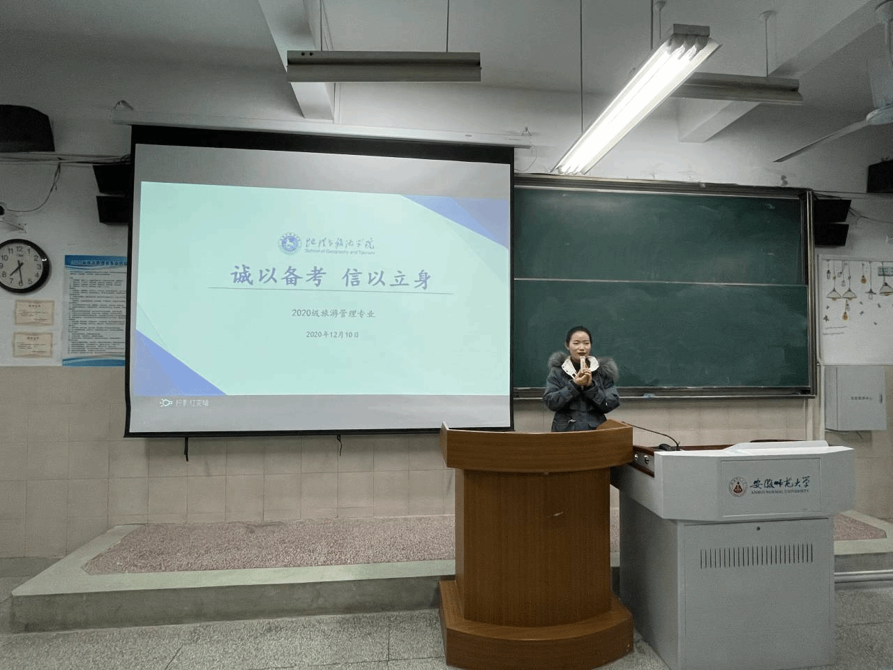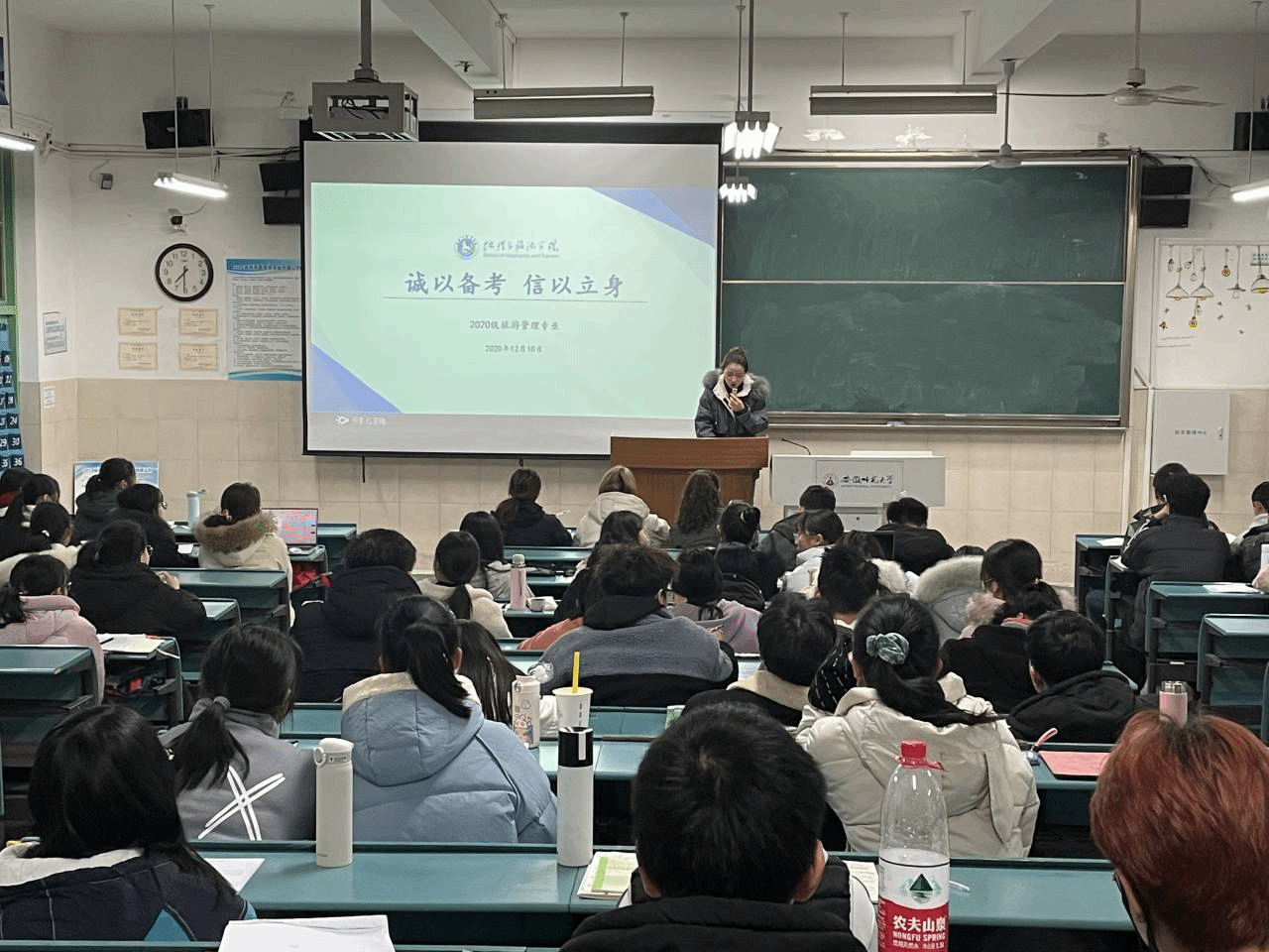 本网讯(地旅嘟嘟成人网 孙云峰 赵佳慧) 沐于知识,学于诚信。大学英语四、六级考试和期末考试临近,为使大一新生在四级英语考试和进入大学的第一次期末考试中能够端正学习态度,树立优良学风,严格考风考纪,12月10日晚七点, 2020级旅游管理专业在行知楼4号楼203教室召开“诚以备考,信以立身”主题班会。班会由辅导员赵佳慧主持,2020级旅游管理专业全体同学参与。