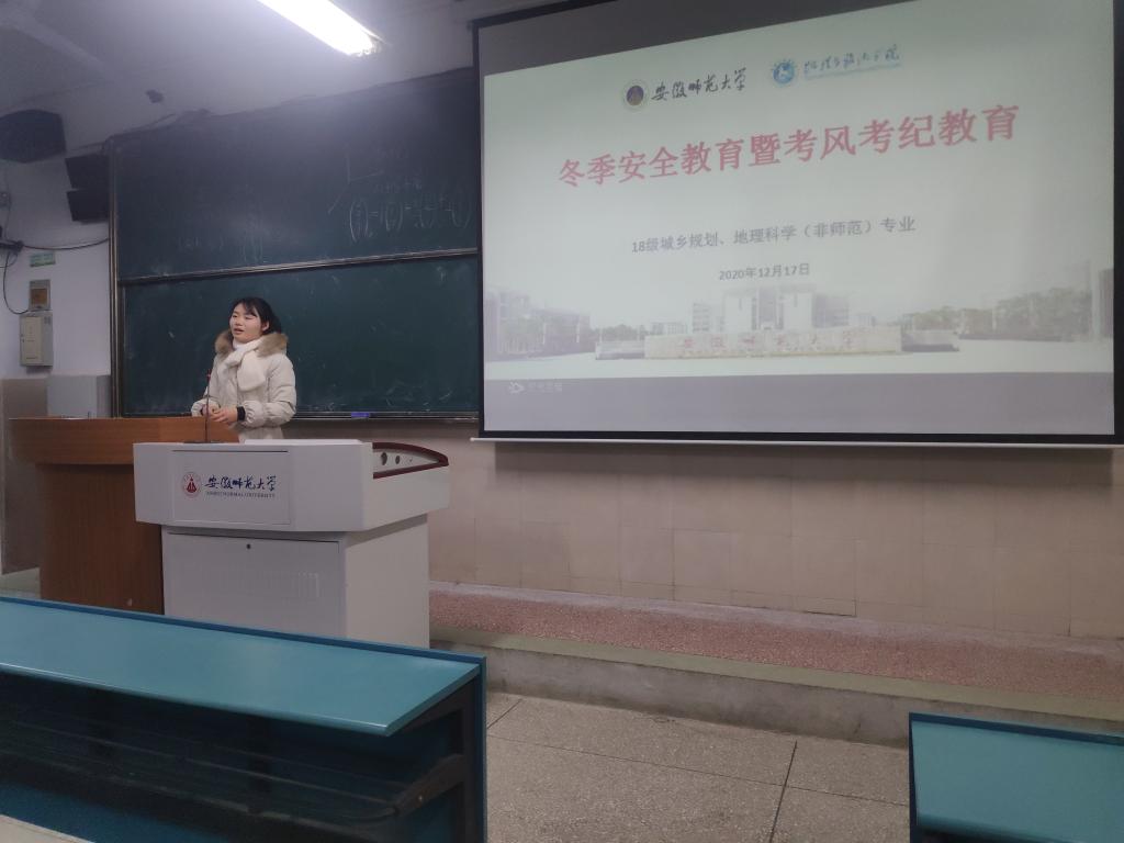 本网讯(地旅嘟嘟成人网 李娜 张慧)强安全防范意识,营诚信考试氛围。2020年12月17日晚上七点,2018级地理科学(非师范)、2018级城乡规划专业冬季安全教育暨考风考纪教育主题班会在行知楼4号楼104教室顺利举行。班会由辅导员张慧主持。