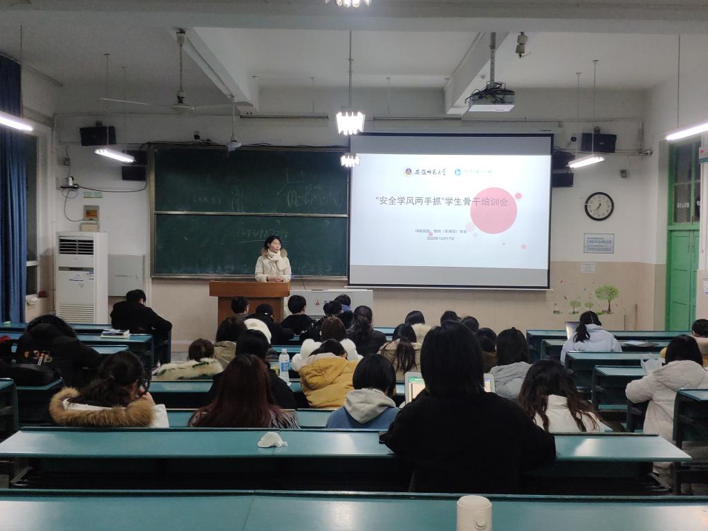 本网讯(地旅嘟嘟成人网 潘爽 张慧)为增强安全意识、加强学风建设,2020年12月17日晚,辅导员张慧主持召开了“安全学风两手抓”学生骨干培训会。2018级城乡规划、2018级地理科学(非师范)专业全体班委、寝室长及党员等学生骨干出席会议。