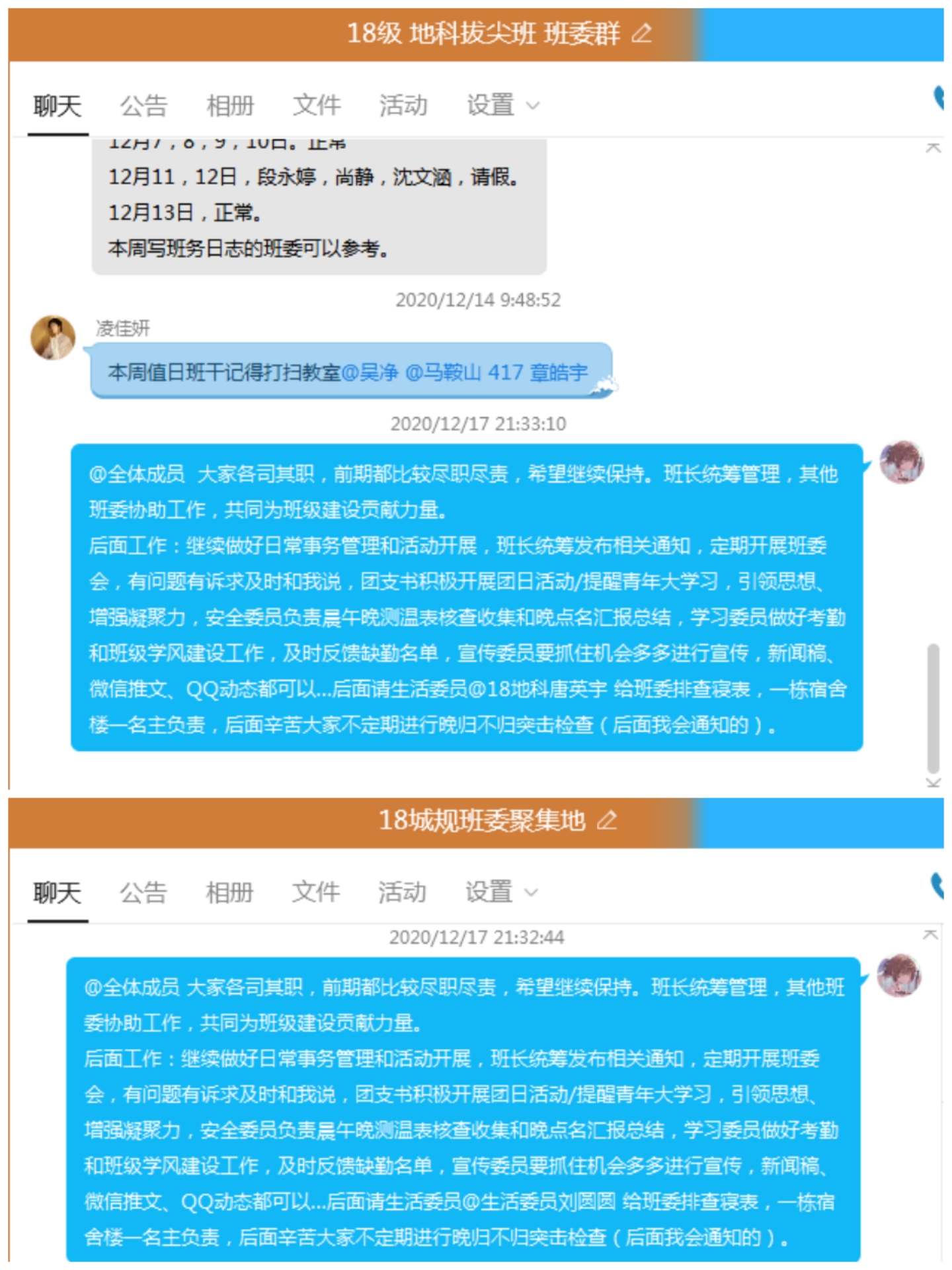 据悉,2018级城乡规划、2018级地理科学(非师范)专业自开学以来坚持定期开展班委工作会,以便更好地建设班级、服务同学。此次会议旨在找出现有问题并提出解决方案,为后期工作的开展指明目标和方向。