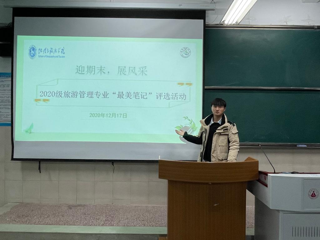 本网讯(地旅嘟嘟成人网 邹瑾璇 吴思慧)“笔”墨生香,独家“记”忆。迎期末,展风采,为营造良好的期末备考氛围,为即将到来的期末考试做准备,建设班级学风,展现班级风采。12月17日晚, 2020级旅游管理班委会在4号教学楼203教室组织开展“2020级旅游管理专业第一届最美笔记”评选活动。此次活动由二班学习委员张乃豪主持,在2020级旅游管理专业全体班委的精心组织和全体同学的积极参与下圆满完成。
