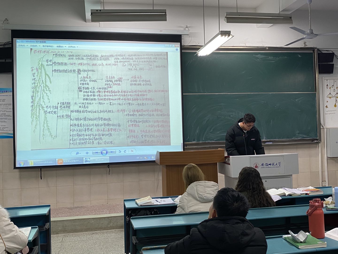 活动伊始,张乃豪介绍活动背景及相应规则和对应奖励,就16日班委初步评选参赛笔记的活动流程及情况进行公示说明,最终由班委打分选出五名选手代表参赛。活动依据笔记内容、字迹、选手现场表现等方面对五名选手进行总体测评,由全体同学选出三位自己心目中“最美笔记”。其次,参与活动的方式还包括在社交平台如QQ空间、朋友圈或其他平台上晒出自己喜欢的笔记,在各平台集赞数前三者可获得同样精美礼品,12月20日将揭晓比赛结果并颁发奖品。