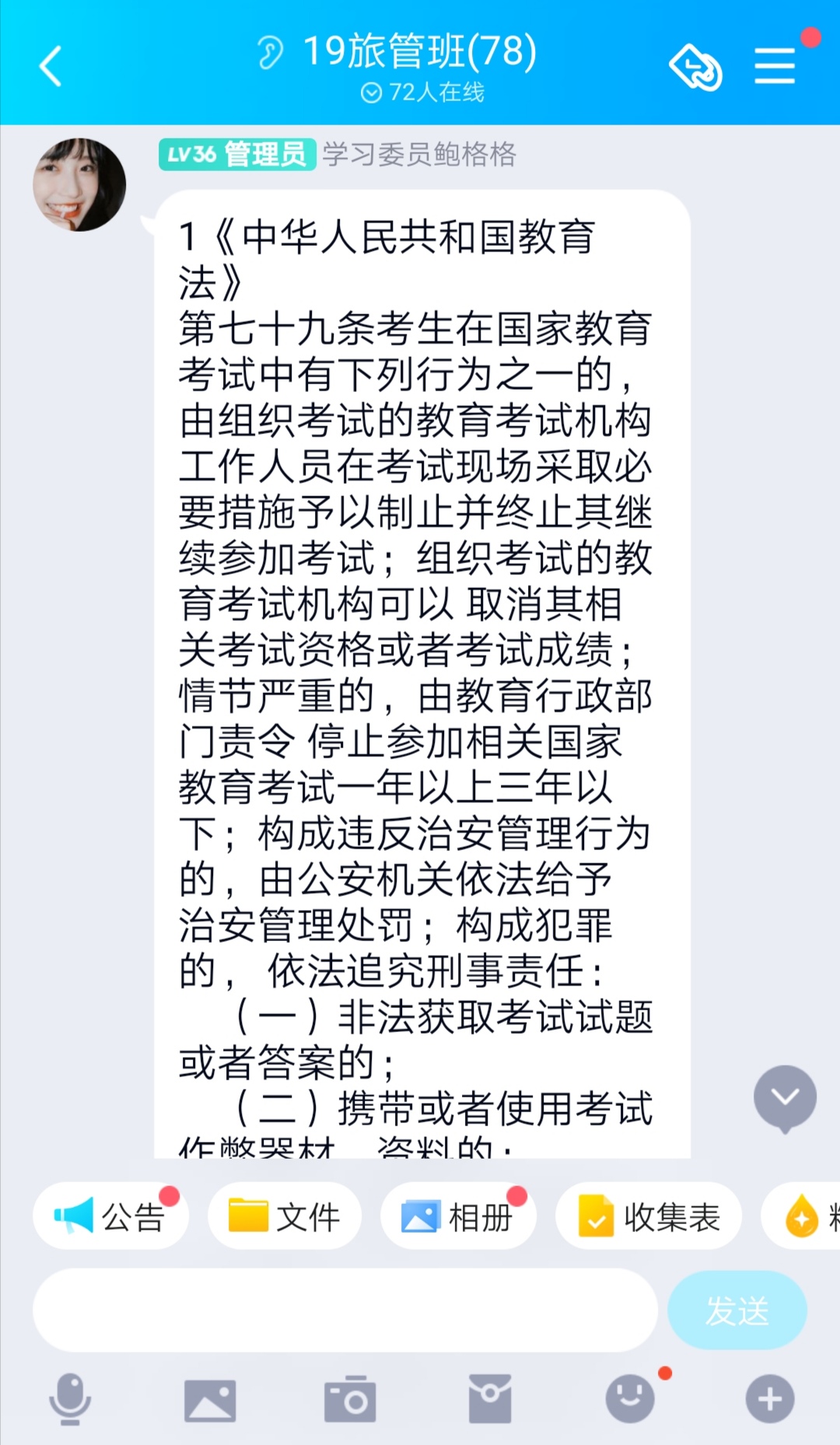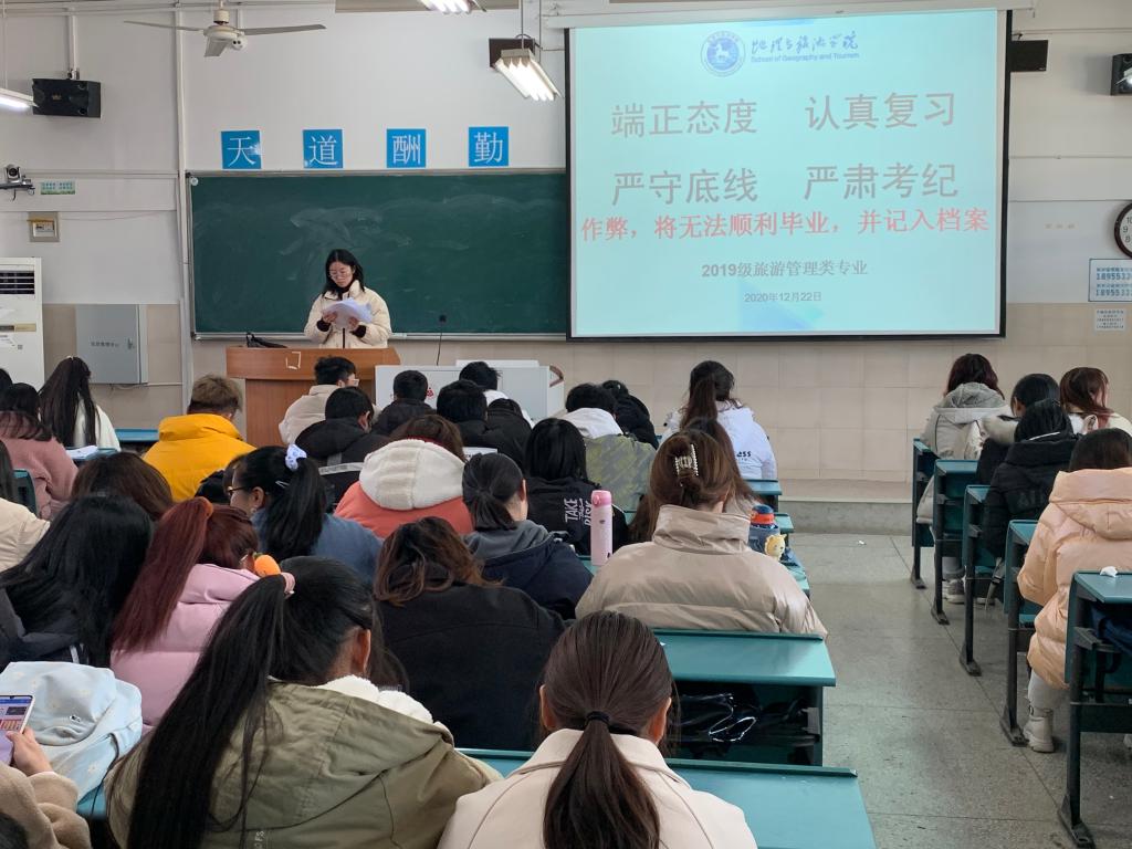 本网讯(地旅嘟嘟成人网 杨睿)期末临近,为营造良好的考试氛围,净化考试环境。近期,2019级旅游管理专业大类召开了诚信考试教育主题班会。会议由辅导员徐倩老师主持。2019级旅游管理、酒店管理所有同学参与其中。