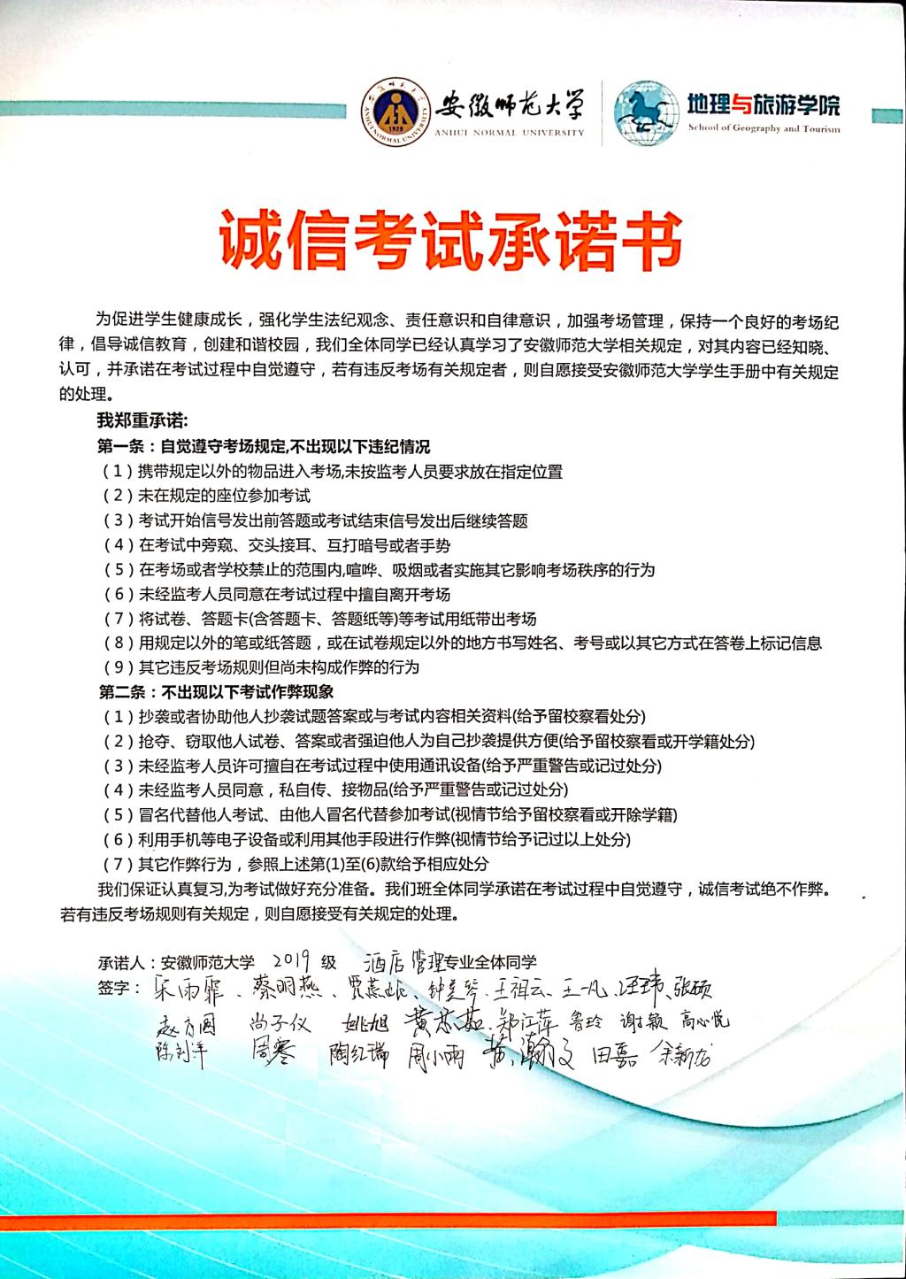 通过此次主题班会,同学们深刻认识到诚信应考的重要性,树立了诚信考试的理念。相信在即将到来的期末考试中,2019级旅游管理所有同学们都能拿出积极饱满的态度,诚信应考,创造佳绩。