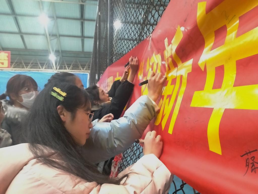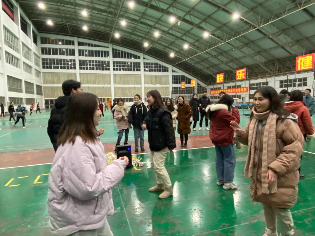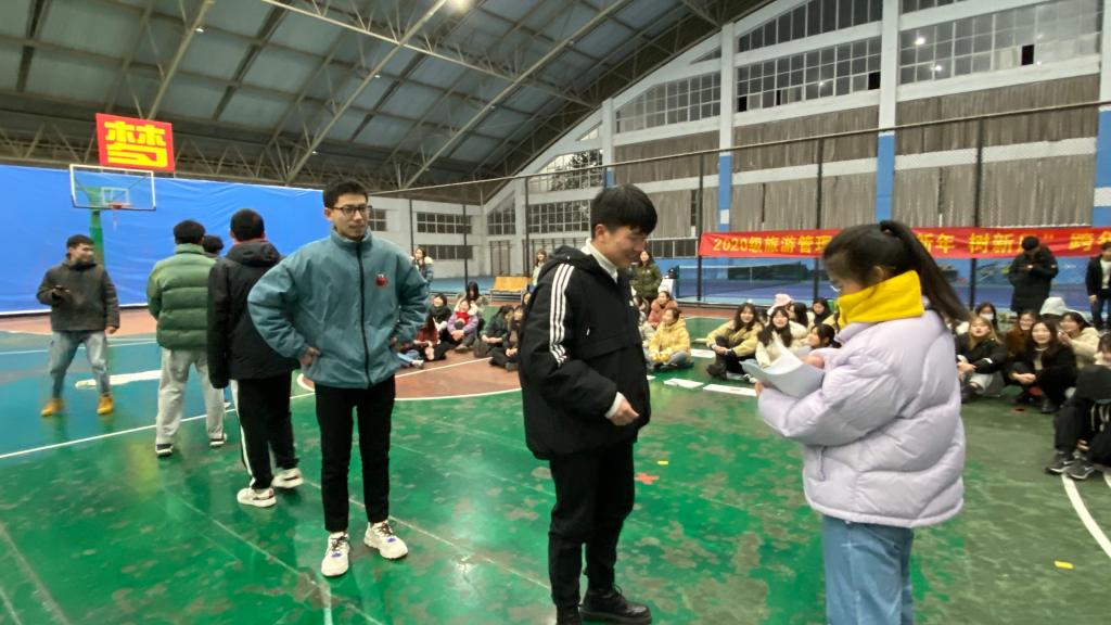 在接下来的游戏环节中,同学们积极主动参与,你画我猜、踩报纸、四人五足等游戏让同学们在愉快地氛围中也感受到了集体的美丽所在,现场气氛很是活跃。同学们踊跃参与游戏,获胜的小组得到了精心准备的纪念品。即兴表演环节中,徐菁、孙云峰、马育荣、张家旺、柳铭伟、余志平和吐尔洪阿义等同学纷纷用歌声为同学们送上新年祝福,其中,来自新疆的色热吉丁同学还用他的母语为同学们献歌一曲,现场气氛热烈,最后大家一起合唱班歌《飞云之下》。晚会结束之际,2020级旅游管理全体同学给嘟嘟成人网的全体老师们录了跨年祝福视频,为此次晚会画上完美的句号。