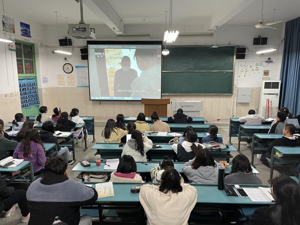 本网讯 (地旅嘟嘟成人网 赵佳慧 徐雨菲)人无精神则不立,国无精神则不强。为宣传伟大抗疫精神、集中展现新冠肺炎疫情防控阻击战中先进基层党组织和优秀共产党员风采、深化“不忘初心、牢记使命”主题教育,3月22日晚上8点,2020级旅游管理专业全体同学在204教室观看《榜样5》专题节目。团支部全体团员通过集中观看,线上和线下感悟分享等多种形式汲取榜样的力量,从而营造团结鼓劲、弘扬正气的浓厚氛围。