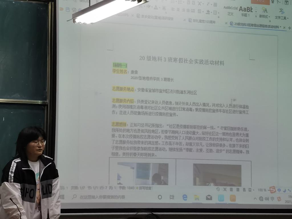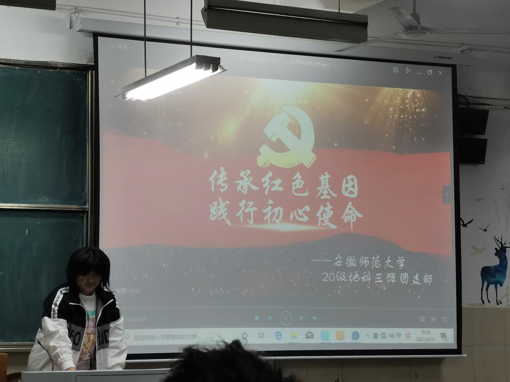 本网讯(汪琦 彭媛媛)为贯彻落实习近平总书记在党史学习教育动员大会上的重要讲话精神,引领广大同学学史明理、学史增信、学史崇德、学史力行,2021年3月10日晚,2020级地理科学类三班举行“以党史为鉴,承红色基因 ”主题团日活动,活动由团支书邵宇萌主持。