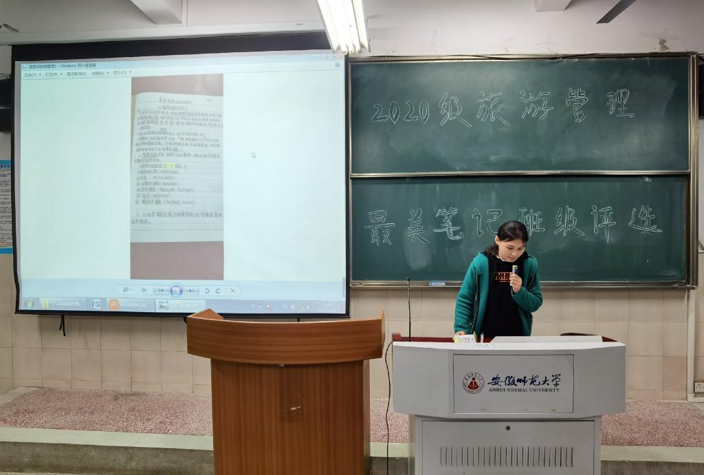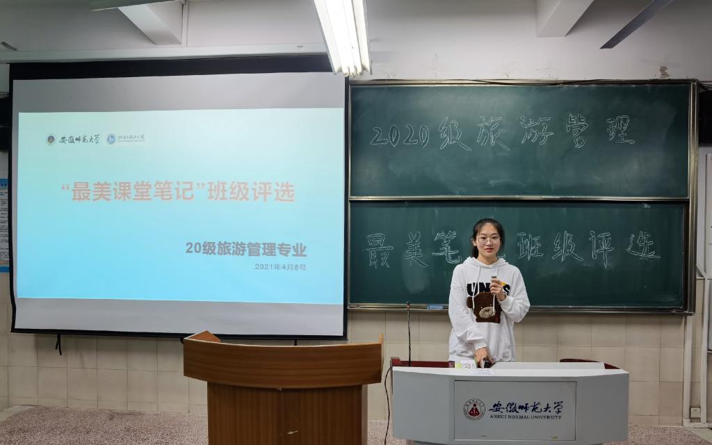 本网讯(地旅嘟嘟成人网 赵佳慧 吴思慧 孙云峰)着手“跳动”字符,记录美好年华。为推动良好学风的养成,帮助同学们养成良好的学习习惯。4月8日晚, 2020级旅游管理专业开展在4号教学楼203教室组织开展“2020级旅游管理专业第二届最美笔记”评选活动。此次活动由班级学习委员徐晖主持,2020级旅游管理专业全体同学参与。