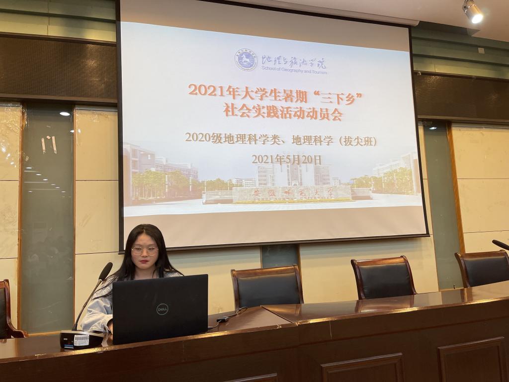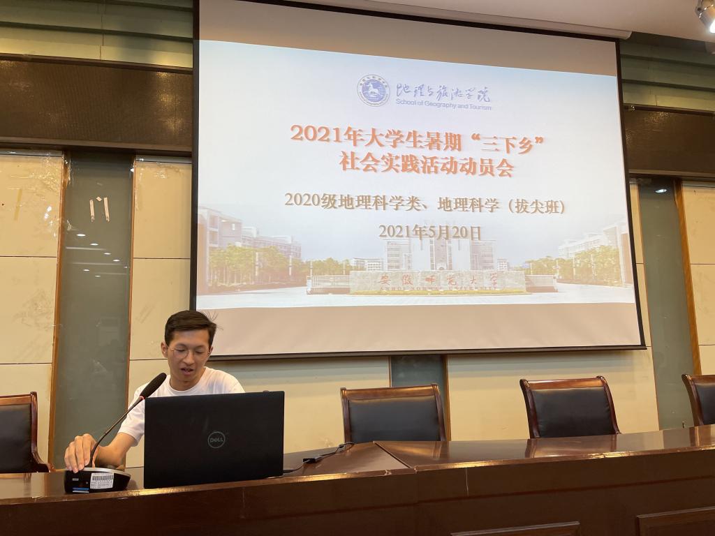 本网讯(地旅嘟嘟成人网 吴阳磊 任家俊 彭媛媛)为加强同学们对暑期社会实践活动的了解,调动学生参加暑期社会实践的积极性,2021年5月20日,2020级地理科学类、地理科学(拔尖班)在地旅嘟嘟成人网实验楼101教室召开暑期社会实践动员会,会议由地理科学类四班团支书张曼其主持,地理科学类、拔尖班全体同学参会。