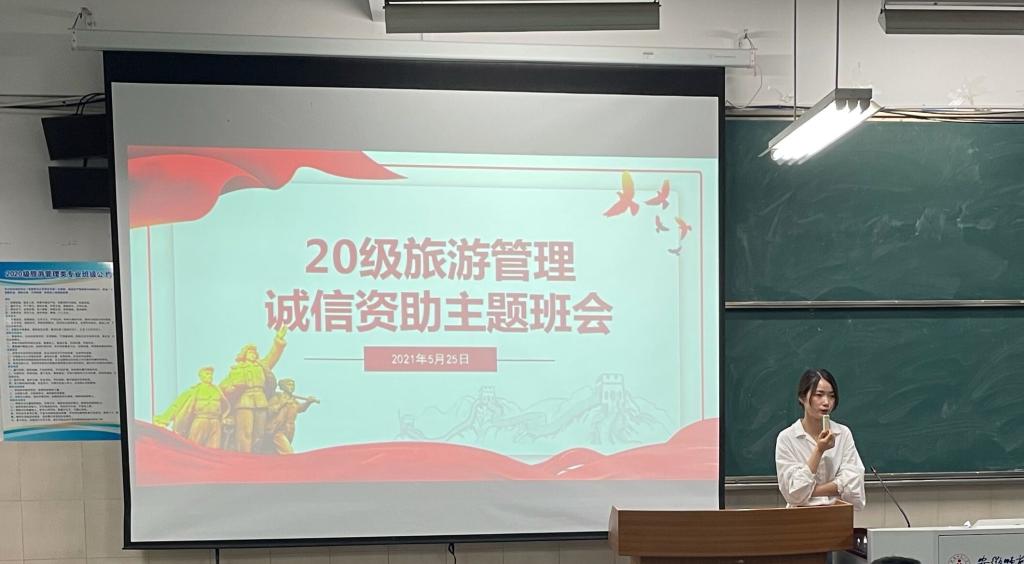 本网讯 (地旅嘟嘟成人网 赵佳慧 孙云峰)为进一步深化和巩固诚信教育成果,引导新时代大学生涵养以诚立身、以信致远的良好品质,从而营造诚实守信重诺践诺的校园文化氛围,5月25日晚,20级旅游管理专业于行知楼四号楼203教室举办诚信主题教育班会,班会由辅导员赵佳慧主持,20级旅游管理专业全体学生参加本次班会。