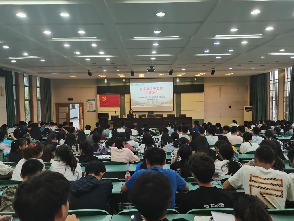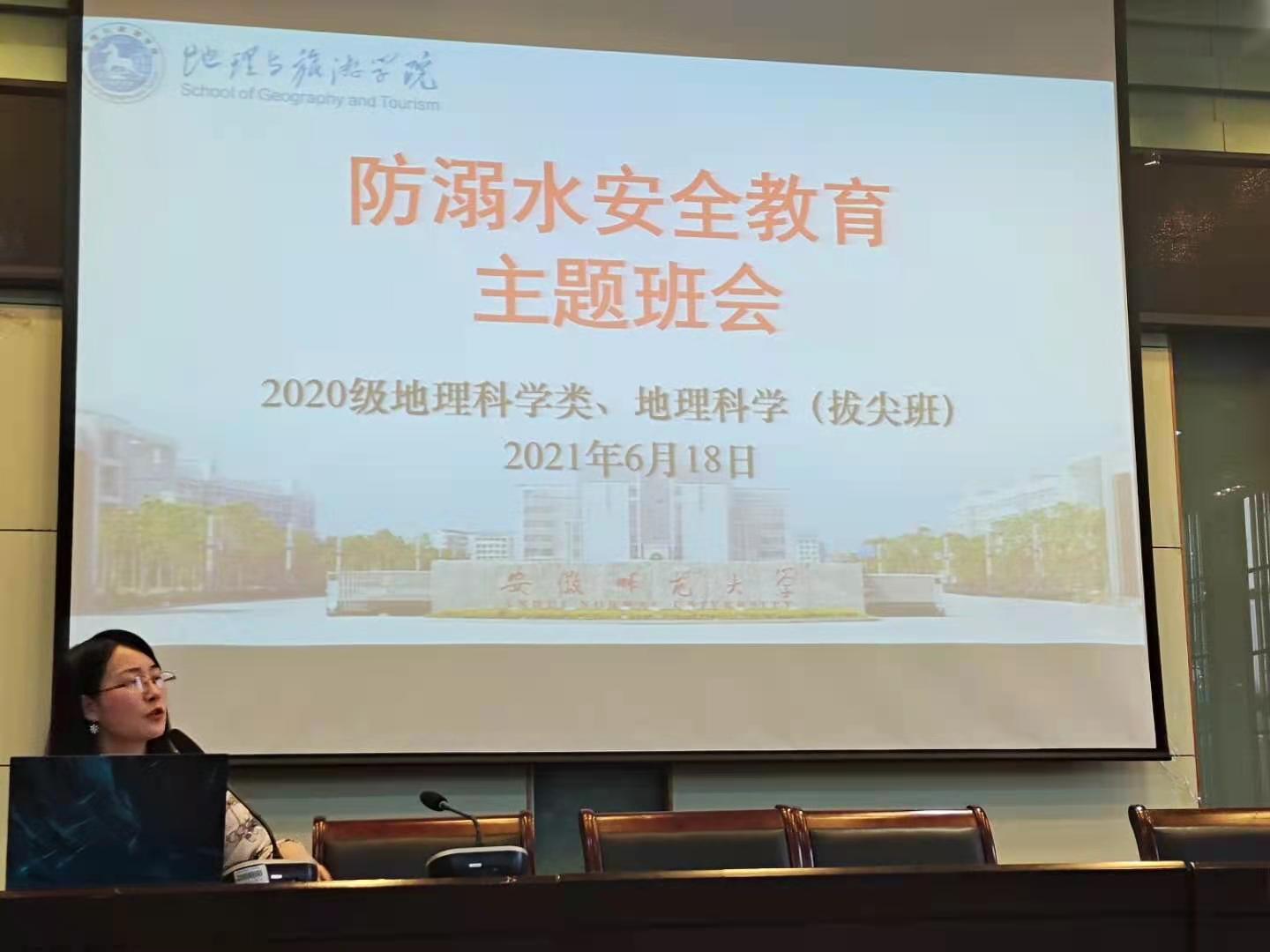 本网讯(地旅嘟嘟成人网 任家俊 彭媛媛)为使同学们了解防溺水安全知识的有关内容,提高每一位同学们的安全意识,抓好学生溺水安全教育工作,提高学生自防、自护、自救的能力,2021年6月18日,2020级地理科学类、地理科学(拔尖班)在地旅实验楼101报告厅开展防溺水安全教育主题班会,会议由辅导员彭媛媛主持,2020级地理科学(拔尖班)、地理科学类所有同学参加会议。