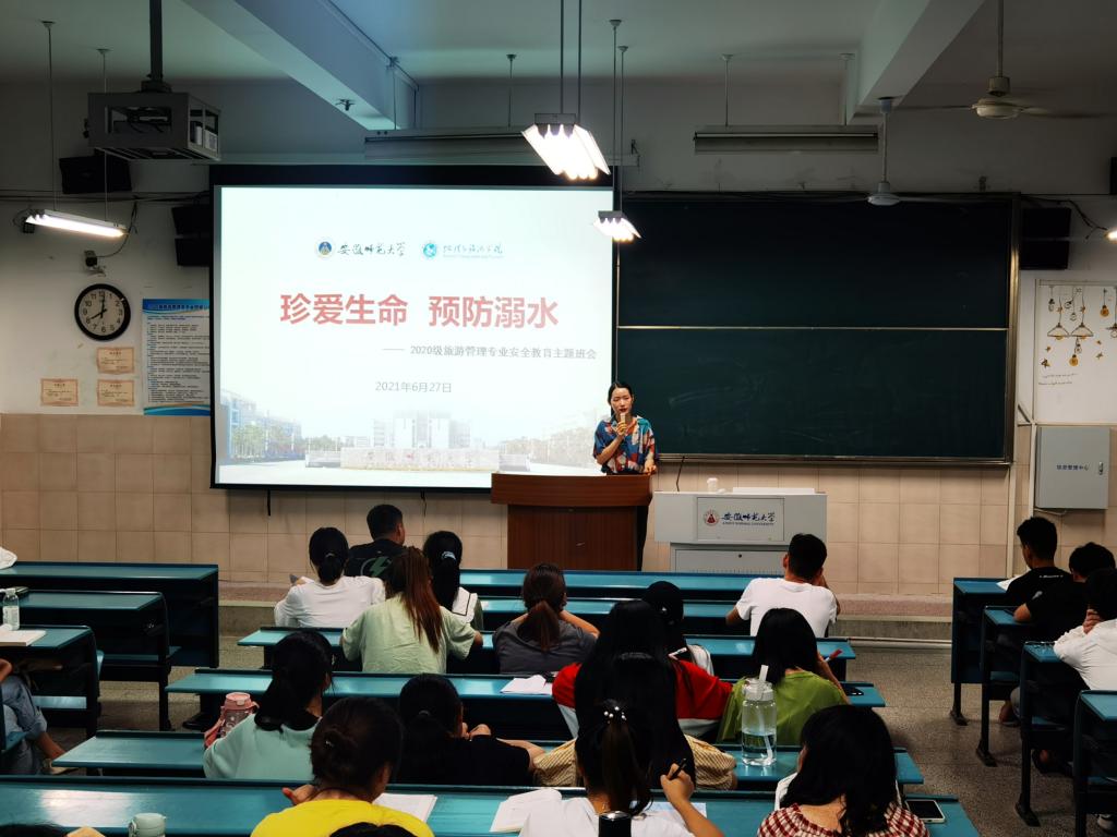 本网讯 (地旅嘟嘟成人网 赵佳慧 李文萍)为进一步增强学生安全意识和防范能力,营造安全良好的校园氛围,6月27日晚,2020级旅游管理专业辅导员赵佳慧在行知楼4号楼203教室召开“珍爱生命 预防溺水”安全教育主题班会,2020级旅游管理专业全体同学参加此次班会。