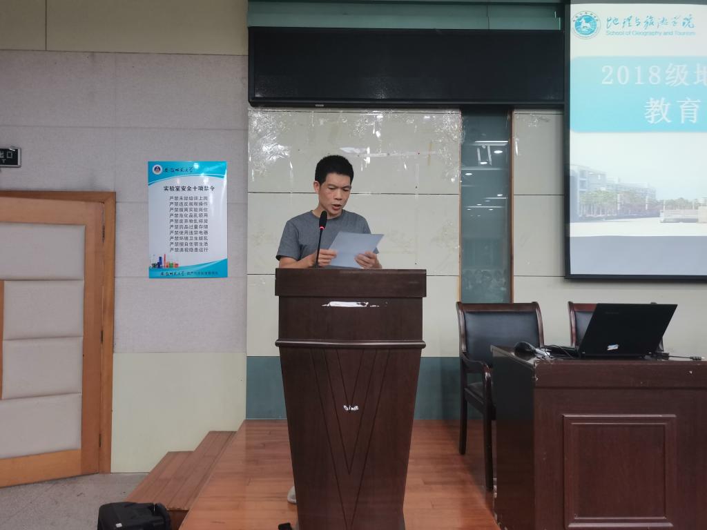 本网讯(地旅嘟嘟成人网 丁茹栩 罗文菁)7月4日下午两点半,2018级地理科学师范专业于地旅实验楼101报告厅举行教育实习评比汇报会,此次会议由辅导员丁茹栩主持,张平究、孙炼、徐仪红、房莉、朱晓强、郦倩玉老师担任评审,实习指导教师焦华富、吴立、孙叶根、汪青、徐光来、杨立辉、胡春生、方叶兵、周迎秋全程指导陪同,2018级地理科学师范专业全体成员参加。