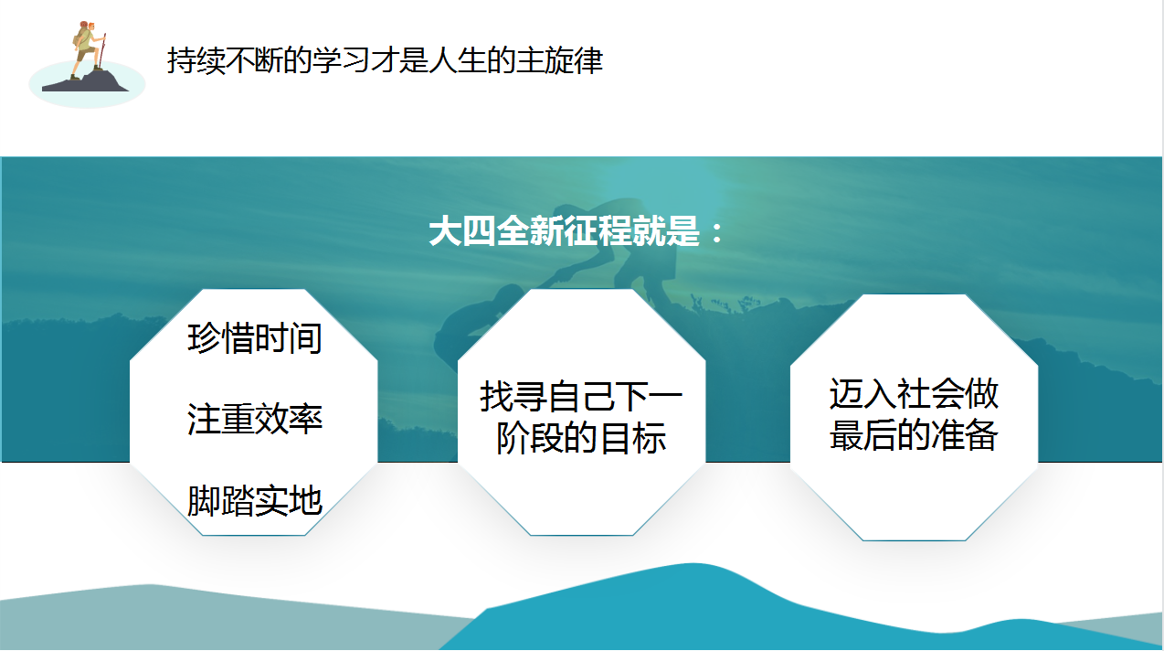 大四面临毕业,是同学们倍有压力的一年,希望同学们能有更清晰的目标与规划,既立足当下,又展望未来,全力以赴,不留遗憾,努力为本科的最后一年添上浓墨重彩的一笔。