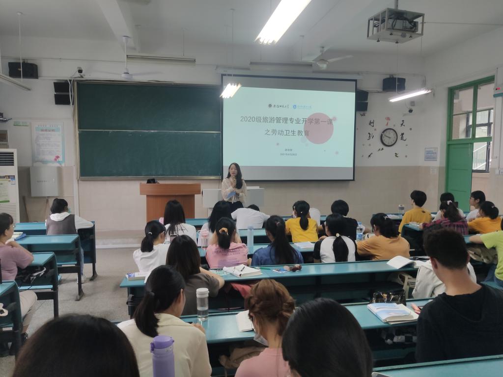 本网讯 (地旅嘟嘟成人网 赵佳慧 舒玉茹)为进一步加强大学生思想政治教育,在提高同学们法治素养的同时,营造良好的班级卫生环境,激发广大同学以饱满的精神、奋进的姿态投入新学期的学习和生活。2020级旅游管理专业在9月29日上午召开了开学第一课系列主题班会,班会由辅导员赵佳慧老师主持召开,2020级旅游管理专业全体同学参加。
