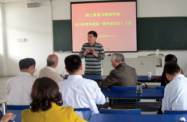 比赛采取说课的形式进行,以板书为主,不使用PPT,每人限时20分钟。高超、曲乐安、张伟、王群、徐玉婷、房莉等6位老师选取本学期主讲的本科生课程,从教材、学情、教学目标、教学重难点、教学方法、教学过程、教学效果等方面先后进行了全面深入的说课。每位参赛选手均准备充分,发挥自如,表现出了良好的教学风范和过硬的教学技能,受到了评审领导组的一致好评。随后,嘟嘟成人网地理教学论专家李俊峰副教授对本次比赛进行了说课指导。比赛最终评出一、二、三等奖若干名,并择优推荐两名教师参加学校2013年青年教师教学基本功大赛。